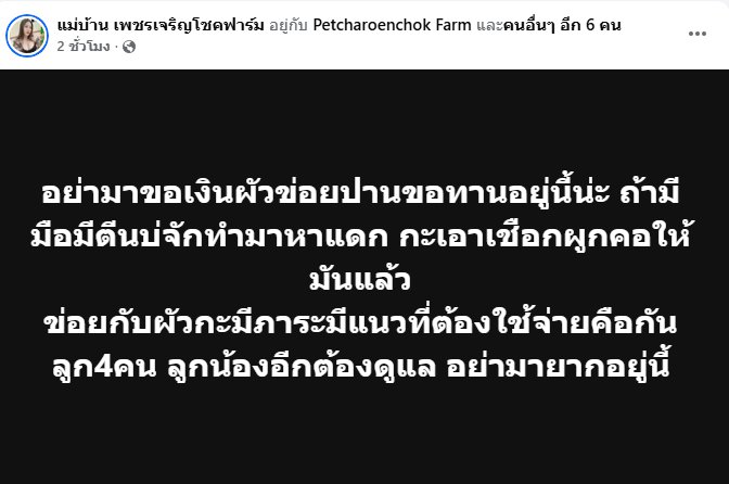 ออกมาโพสต์ข้อความเดือดผ่านโซเชียลส่วนตัว ตอกกลับกลุ่มบุคคลที่เข้ามาขอเงินอย่างต่อเนื่อง จนสร้างความอึดอัดใจให้กับครอบครัว