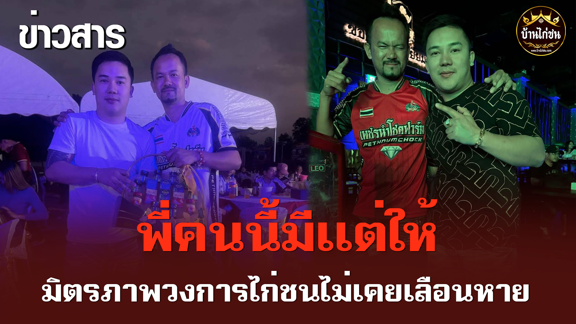 เสี่ยต้าทีเคฟาร์มไม่แน่ใจว่าเชียร์จริงหรือเพราะมีผลประโยชน์ร่วม ที่น่าฮือฮาหลังจากที่เสี่ยต้าทีเคฟาร์มได้ออกมาโพสว่า “ก๋...OE ชม. นี้ผมให้เพชรนำโชคเป็นที่หนึ่งสำหรับผมไปแล้วครับ เพราะว่าแกจ้างเด็กให้ผมสี่ครับ” พี่น้องคู่นี้หยอกกันน่ารักจริงๆ มิตรภาพวงการไก่ชนไม่เคยเลือนหายไปจริงๆ #พี่ๆชาวไก่ชนท่านใดต้องการ ชมคลิปย้อนหลัง รับชมถ่ายทอดสด หรือข่าวสารอื่นๆ ของวงการไก่ชน สามารถติดตามได้ที่ WWW.บ้านไก่ชน.COM