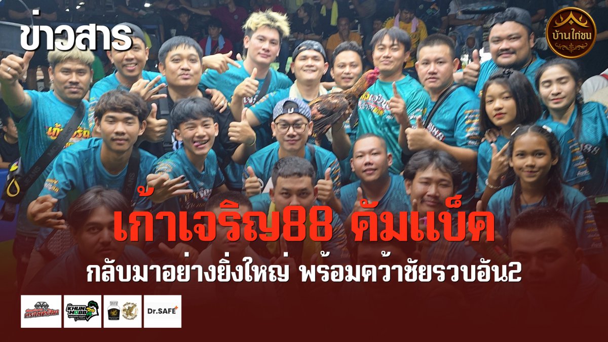 สนามชนไก่ ส.ยิ่งเจริญ โคราช  กลับมาอย่างยิ่งใหญ่สำหรับ ซุ้มเก้าเจริญ88 ภายใต้การนำทีมของ เสี่ยกอล์ฟ ที่พาไก่เก่งประจำซุ้มอย่าง เจ้าเจริญทอง ลงสนามโชว์ฟอร์มดุ คว้าชัยชนะ 2 อันรวบอย่างเด็ดขาด พร้อมหอบถ้วยแชมป์กลับบ้านที่จังหวัดมหาสารคาม การกลับมาครั้งนี้ สร้างแรงสั่นสะเทือนให้กับวงการไก่ชนอีสาน หลังจากซุ้มห่างหายเวทีไปพักใหญ่ เจ้าเจริญทองถือเป็นตัวความหวังของทีม และสามารถพิสูจน์ความแกร่งได้เต็มสายตา  หลังจากนี้ ซุ้มเก้าเจริญ88 น่าจะออกชนอย่างต่อเนื่อง แฟน ๆ รอติดตามผลงานได้เลย!