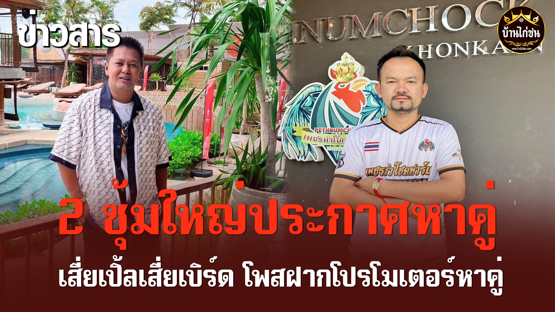 เสี่ยเบิร์ด ส.มีสุวรรณ ได้โพส “ มีสุวรรณ ทีม ก็ยังรอเนื้อคู่ อยู่น่ะ อ่อน ตอตุ่มตุ่มๆ 3รอบ 2.6 พม่าชอบไทย พร้อมสร้างสีสันครับ ”ทางด้านเสี่ยเปิ้ล เพชรนำโชคก็โพสหาคู่เช่นกัน “ ฝากหาคู่ด้วยครับ ไปได้ทุกสนามทั่วประเทศ ผมมีนักกีฬาไทยหนุ่มๆเลยหน้าบางๆ เจอได้ทุกประเภท มีหลายตัวตั้งแต่ 2.6,2.7,2.8,2.9 พร้อมดูตัวครับ เดี๋ยวขนไปให้เลือกเอาตามใจชอบเลย ขอแค่มีดูตัว ”ประกาศหาคู่แบบนี้ ต้องมาลุ้นรอติดตามเลยครับ ว่าทั้ง2ซุ้มจะได้เจอตัวเก่งตัวเด็ดจากซุ้มไหน ห้ามพลาดเด็ดขาด พี่ๆท่านใดต้องการรับชมคลิปย้อนหลัง หรือรับชมถ่ายทอดสดติดตามข่าวสารได้ที่ WWW.บ้านไก่ชน.COM