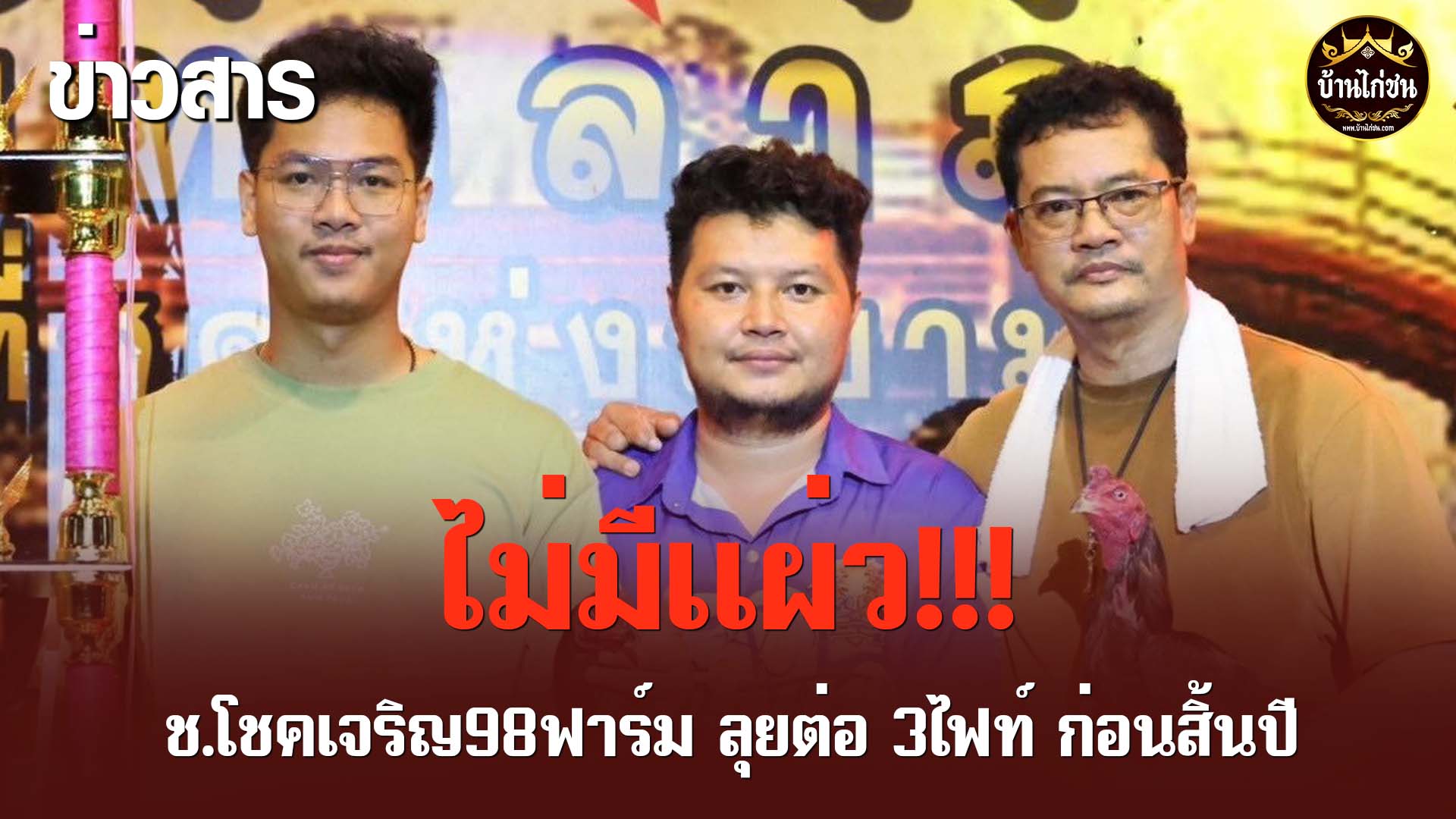 เรียกได้ว่าเป็นซุ้มที่กำลังมาแรง และเป็นกระแสอยู่ในช่วงนี้เลยก็ว่าได้ กับ ช.โชคเจริญ98ฟาร์ม หลังจากเอาชนะมาได้ในหลายๆไฟท์ก่อนหน้านี้ ทางซุ้มก็ได้ออกประกาศหาเนื้อคู่มาอย่างต่อเนื่อง โดยในเดือนธันวาคมนี้ เป็นกำไรให้กับคนดูอย่างเราๆกันอีกแล้วครับ โดยทางซุ้ม ช.โชคเจริญ98ฟาร์ม นำทีมโดย ป๋านุ ได้ออกมาบอกว่า " มีให้ร่วมสนุกตลอด ผมง่ายๆ แต่ไม่ใช่อะไรก็ได้ ไม่เหลี่ยม ไม่เยอะ ชอบที่ลงตัวกันทั้ง2ฝั่ง จบ " โดยมีนัดทำการแสดง 3ไฟท์ ก่อนสิ้นปี ในวันเสาร์ ที่ 7 ธันวาคม ที่สนามท่าพระ ลงสนามทำการแสดง 2คู่ วันเสาร์ที่ 14 ธันวาคม ที่สนามมหาลาภ ลงสนามทำการแสดง 1คู่ และ ในวันเสาร์ที่ 21 ธันวาคม ที่สนามท่าพระ ลงสนามทำการแสดงอีก 1คู่ เป็น 3ไฟท์ ก่อนสิ้นปีที่น่าติดตามจริงๆครับ กับทางซุ้ม ช.โชคเจริญ98ฟาร์ม จะสนุก และสุดมันขนาดไหน ฝากพี่น้องไก่ชน ติดตามกันด้วยนะครับไม่มีแผ่ว!!!