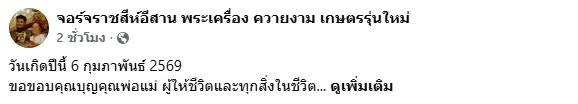 วันที่ 6 กุมภาพันธ์ 2569 ถือเป็นอีกหนึ่งวันสำคัญของ “เสี่ยจอร์จ ราชสีห์อีสาน” บุคคลที่เป็นที่รู้จักและได้รับความเคารพในหลายแวดวง เช่นวงการไก่ชน ควายงาม หรือแม้แต่กระทั่งวงการมวย โดยในโอกาสวันคล้ายวันเกิดปีนี้  เสี่ยจอร์จ เปิดใจแสดงความ สำนึกในบุญคุณของผู้มีพระคุณทุกท่าน ที่เป็นรากฐานสำคัญของชีวิตและความสำเร็จ