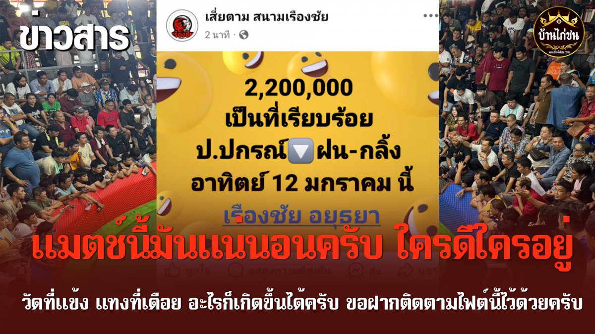 วัดที่แข้งแทงที่เดือย อะไรก็เกิดขึ้นได้ อัพเดทคู่มันที่กำลังจะชก ในวันที่ 12 มกราคม นี้ ผมเชื้อว่ามีใครหลายๆคนคอยติดตามรอดูไฟต์นี้อยู่ ผมว่ามันอย่างแน่นอนครับ เป็นไฟต์ระหว่าง ป.ปกรณ์ VS ฝน-กลิ้ง ชิงกันที่ สนาม เรืองชัยอยุธยา ขอฝากติดตามเป็นกำลังใจให้กับพวกเขาด้วยครับ ไฟต์นี้แบบวัดกันที่เบอร์แข้งและความคม ใครดีใครอยู่ ไก่เดือยไทยอะไรก็เกิดขึ้นได้ทุกคู่ทุกสนามครับ ดูให้เป็นแนวทางการกีฬานะครับ และยังมีคู่อื่นที่ผมยังไม่กล่าวถึงอีกหลายคู่ครับ วันที่ 12 นี้ผมว่ามันไม่แพ้กันกับเสาร์-อาทิตย์ที่ผ่านมา ถ้าไม่มีสายป่วนมันแน่ครับ