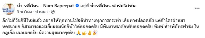 ทางฟาร์มยังได้ฝากข้อคิดดี ๆ ถึงทุกท่านว่า ไม่ว่าจะเดินทางไปไหนในช่วงเทศกาล ขอให้ใช้สติเป็นที่ตั้ง นำสตินำทางทุกการกระทำ เพื่อความปลอดภัยของตนเองและคนรอบข้าง เดินทางด้วยความไม่ประมาท จะได้กลับถึงบ้านอย่างปลอดภัยทุกเส้นทาง