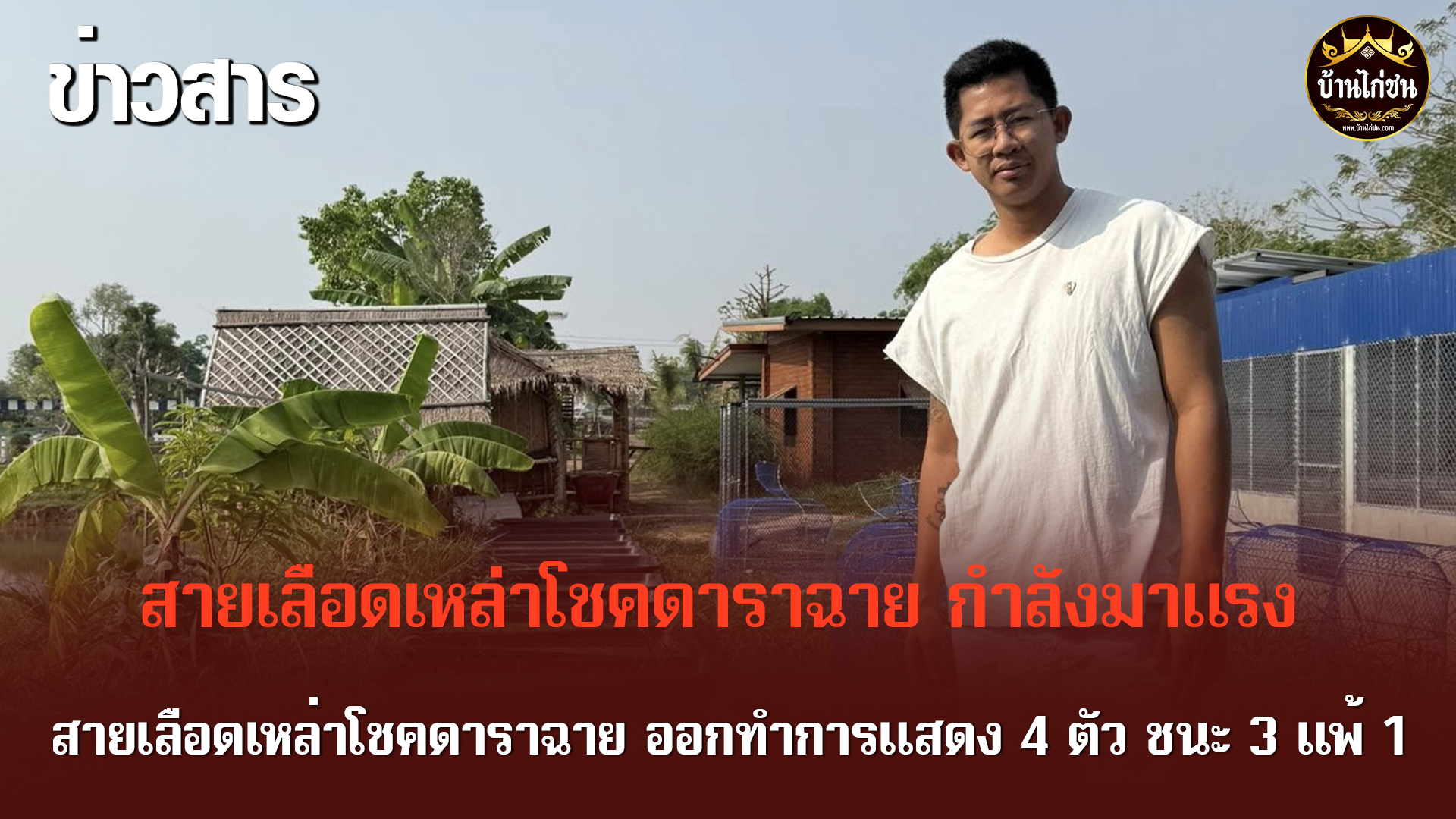 ตัว ถือว่าเป็นตัวเลขที่ดีครับ สายเลือดเยียร์บุรีรัมย์ มีผลงานให้เห็นตลอด เมื่อวานนี้ เจ้าจงเจริญ แม่เป็นลูกเหล่าโชคดาราฉาย ได้โชว์ฝีไม้ลายแข้ง แบบไม่ธรรมดา เป็นไก่ตีแผลสำคัญครับ ยกขึ้นมีแต่ตาล้วนๆ ได้เอาชนะไก่ตัวเก่งของ