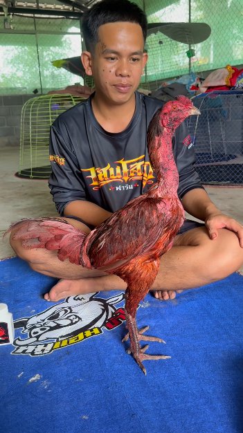 "เจ้าบุญจันทร์" ตัวนี้ร่างกายไม่สมบูรณ์ มีอาการ “หัวบาก” และ “ขาดเป้” จึงไม่สามารถออกทำการชนได้ แต่เป็นไก่ที่ทาง ด้งเด้ง ขอเก็บไว้ดูแลต่อ ถือเป็นตัวพิเศษอีกตัวของคอก