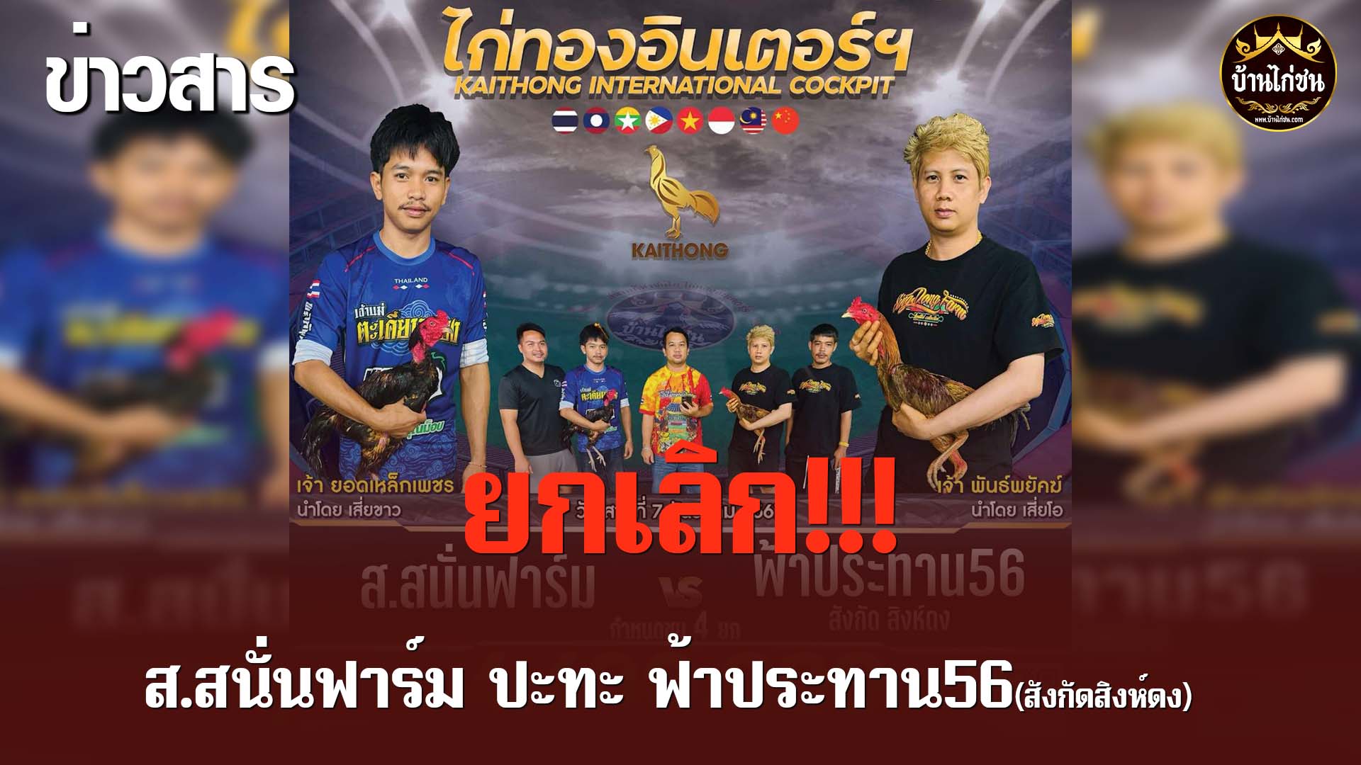 เป็นที่น่าเสียดายสำหรับคู่เงินล้าน ที่จะพบกันในวันเสาร์ ที่7 ธันวาคม นี้ครับ สำหรับ ทางด้าน ส.สนั่นฟาร์ม นำทีมโดยเสี่ยขาว ที่จะส่งเจ้ายอดเหล็กเพชร ปะทะกับ เจ้าพันธ์พยัคฆ์ จากซุ้มฟ้าประทาน56 สังกัดสิงห์ดง ซึ่งนำทีมโดย เสี่ยโอ ที่จะเจอกัน ณ สนามไก่ทองอินเตอร์ ที่กำหนดชนกัน 4ยก ชิง 4.4m แต่เป็นทางด้าน ส.สนั่นฟาร์ม ต้องขอแจ้งยกเลิก เพราะว่าทาง เจ้ายอดเหล็กเพชรนั้น ปากกระเทาะ จึงเลื่อนการทำการแสดงครั้งนี้ออกไปก่อน รอเจ้ายอดเหล็กเพชร สมบูรณ์พร้อม100เปอร์เซ็น แล้วกลับมาลุยกันใหม่ ก็เป็นกำลังใจให้กับทางซุ้ม ส.สนั่นฟาร์นะครับ และขอให้เจ้ายอดเหล็กเพชรกลับมาสมบูรณ์ไวไว พร้อมกลับมาทำการแสดงเพื่อเป็นกำไรให้กับคนชมอย่างเราๆได้ดูกันนะครับยกเลิก!!