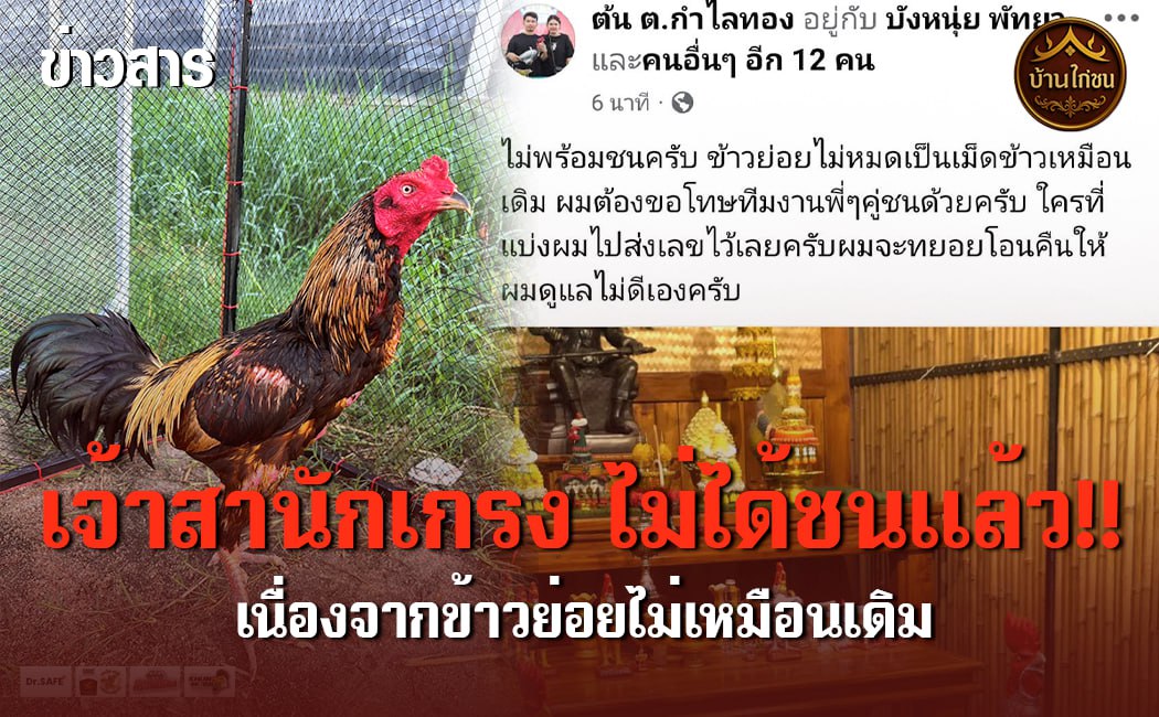 ไก่ตัวนี้ไม่ได้ทำการแสดงแล้ว สาเหตุเกิดจากไก่ข้าวไม่ย่อย
