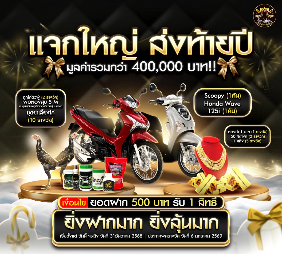 บ้านไก่ชน แจกใหญ่ส่งท้ายปี มูลค่ารวมกว่า
