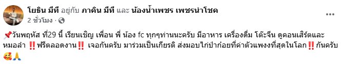 ทางเสี่ยเปิ้ล ได้โพสต์เฟสบุ๊คส่วนตัวว่า ขอเรียนเชิญ เพื่อน พี่ น้อง และ FC ทุกท่าน ร่วมเป็นสักขีพยานในวันดี ๆ 29 มกราคม 2569 นี้ พบกันตามนัดครับ