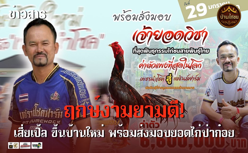 ถือเป็นอีกหนึ่งวันมงคลของคนในวงการไก่ชน เมื่อ เสี่ยเปิ้ล เพชรนำโชค เตรียมจัดพิธี ขึ้นบ้านใหม่ ในวันพฤหัสบดีที่ 29 มกราคมนี้ ท่ามกลางบรรยากาศแห่งความเป็นสิริมงคล โดยได้ถือเอาฤกษ์งามยามดี เชิญพี่น้องคนสนิท เพื่อนฝูง และแฟนคลับ (FC) มาร่วมแสดงความยิน กันอย่างพร้อมหน้า