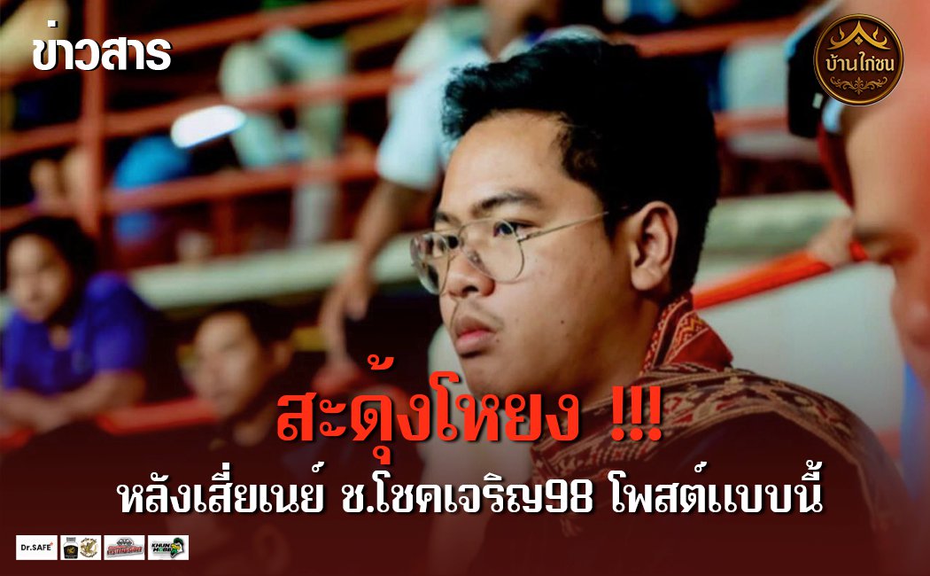 ฮือฮาในวงการไก่ชน! เมื่อ “เนย์ ช.โชคเจริญ98ฟาร์ม” เจ้าของฟาร์มดังสายเลือดแรง โพสต์ผ่านโซเชียลมีเดียในเชิงหยอกล้อถึงดีลเปรียบไก่ชนที่ยังไม่คืบหน้า ชนิดที่แฟนๆ ต้องขยี้ตาอ่านอีกรอบว่า “ไม่ได้ดูตัวกันหรอกครับ!” หลังโปรโมเตอร์ส่งรูปมาให้ดู ก่อนจะเงียบหายไปร่วมชั่วโมง โทรศัพท์ก็ไม่รับสาย สร้างความงุนงงให้เสี่ยเนย์