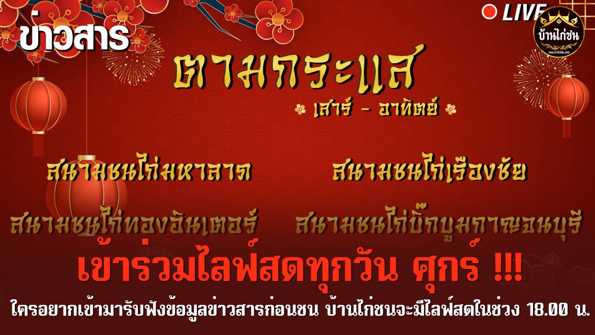 ใครอยากเข้ามารับฟังข้อมูลข่าวสาร บ้านไก่ชนจะมีไลฟ์สดในช่วง 18.00 น.