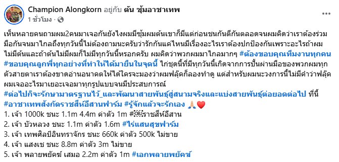 เสี่ยแชมป์ยังทิ้งท้ายว่า จากนี้ไปเป้าหมายของซุ้มอาชาเทพคือ รักษามาตรฐาน พัฒนาสายพันธุ์ให้แข็งแรงในสนามจริง