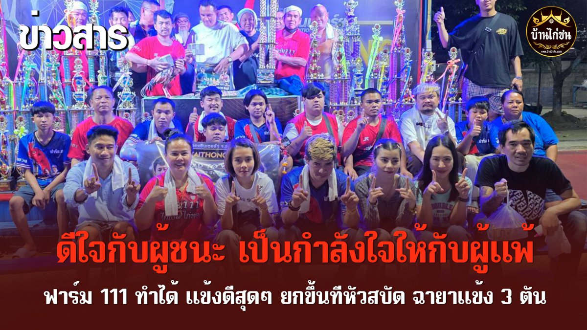 เมื่อวานนี้ "ฟาร์ม 111" ทำได้ ได้โชว์ฝีไม้ลายแข้งให้ประจักษ์เห็นกันเป็นที่เรียบร้อยครับ เรื่องเบอร์แข้ง เจ้าตัวนี้ไม่แพ้ตัวไหนอย่างแน่นอน ยกแข้งขึ้นทีหัวกระจุย เซถลา ร้ายไม่เบาครับเจ้าตัวนี้ ในไฟต์นี้ได้เอาชนะซุ้ม หนุ่มเชียงใหม่ ไปได้ในยกที่ 4 ครับ ได้คว้าเงินรางวัล 6.6M กับไปครับ แข่งขันกันที่ สนามไก่ทองอินเตอร์ ช่วงนี้ ฟาร์ม111 กำลังมาแรงครับ ใครก็หยุดไม่อยู่ ดีใจกับผู้ชนะเป็นกำลังใจให้กับผู้แพ้ครับ ไก่เดือยไทยอะไรก็เกิดขึ้นได้ครับ ฝากติดตามและเป็นกำลังใจให้กับพวกเขาด้วยครับ ขอฝากติดตามใว้ด้วยครับเจ้าตัวนี้ รอบหน้าสนุกอีกแน่นอนครับ