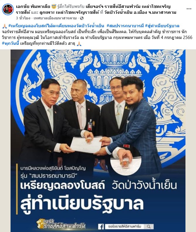 เหรียญฉลองโบสถ์ วัดป่าวังน้ำเย็น สู่ทำเนียบรัฐบาล