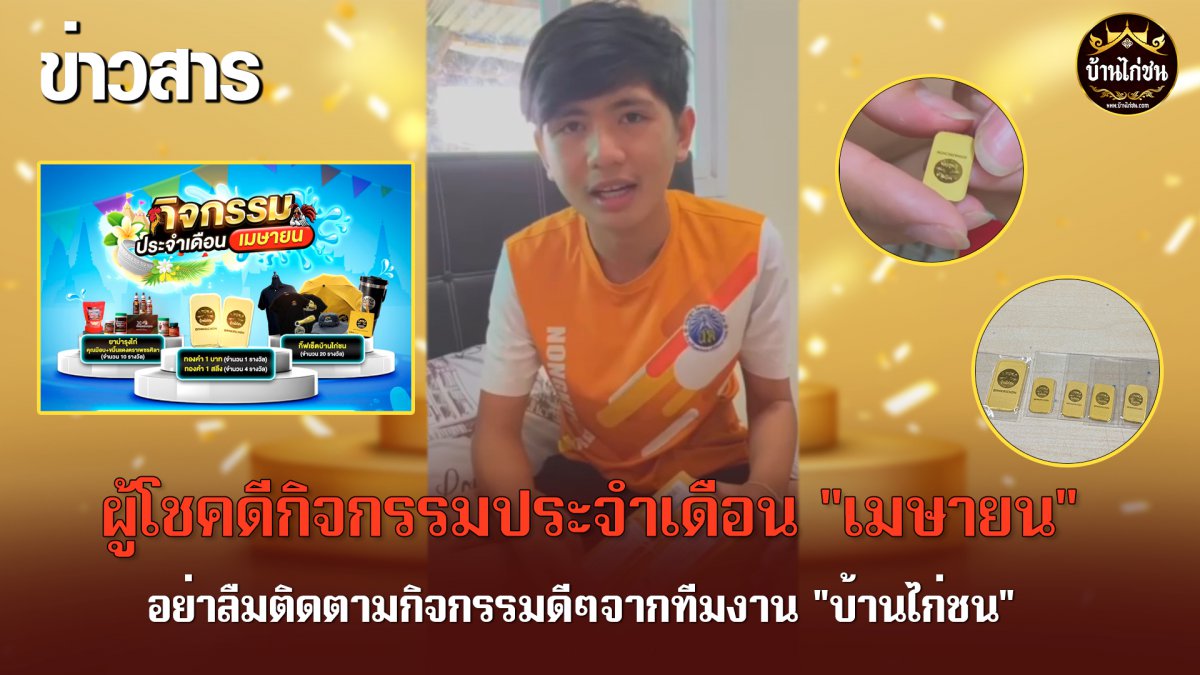 และรางวัลใหญ่นั่นก็คือทองคำ บอกได้เลยว่าบ้านไก่ชน จัดใหญ่แจกจริง มีให้ร่วมสนุกทุกเดือน พี่ๆท่านไหนไม่อยากพลาดกิจกรรม อย่าลืมกดติดตามทุกแพลตฟอร์มของบ้านไก่ชน