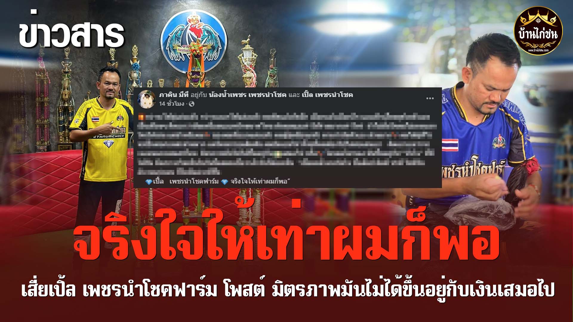 เสี่ยเปิ้ล เพชรนำโชคฟาร์ม ยังคงออกโรงหาคู่ดูตัวอยู่เรื่อยๆ และพร้อมนัด 7 ธ.ค. นี้ โดยเริ่มที่ 1M โดยล่าสุดนี้ ได้นัดดูตัวกับทาง ซุ้มเก้าเจริญ88 ไปเมื่อ2วันที่แล้ว แต่ไม่ตรงกัน จึงทำให้ทางเสี่ยเปิ้ล ยังคงหาคู่ต่อไป โดยเมื่อช่วงดึกวานนี้ เสี่ยเปิ้ลได้ออกมาโพสต์เฟซบุ๊คส่วนตัวว่า " กว่าจะได้คู่แต่ละตัว กว่าจะออกได้แต่ละตัว ผมคัดแล้วคัดอีก เลือกแล้วเลือกอีก และเฝ้าเลี้ยงดูด้วยตัวเองเป็นเดือนๆ คิดเอาว่ามันเหนื่อยและหนักขนาดไหน ต้นทุนและค่าใช้จ่ายมากเท่าไหร่ ถ้าไม่มั่นใจผมไม่เคยบอกใครให้เล่น แต่สำหรับผมไก่ของผมที่ออกแต่ละตัว ผมสู้สุดมือทุกตัว ตามกำลังตัวเอง ส่วนมากไก่ ผมได้คู่ทีไรจะเป็นต่อก่อนสะส่วนมาก แต่ใครมาขอเดิมพัน ผมยังแบ่งให้ ทั้งๆที่ผมต้องไปไล่ต่อเล่นเอา คิดเอาเองว่าจะเจอคนแบบผมสะกี่คน มิตรภาพมันไม่ได้ขึ้นอยู่กับเงินเสมอไป หรือไก่ใครต่อใครรอง มันขึ้นอยู่กับ “หัวใจ” ที่มีให้กัน ถึงเขาจะไม่เห็นในวันนี้แต่ผมเชื่อว่าสักวันก็ต้องเห็น " เชื่อผมสิ คนจริงใจ ซื่อสัตย์ คิดดี ทำดี ไม่มีวันอับจนแน่นอน ชีวิตมีแต่จะดีขึ้น ????เปิ้ล เพชรนำโชคฟาร์ม ???? จริงใจให้เท่าผมก็พอ ซึ่งอ่านแล้วทางแอดคิดว่า กว่าจะได้เปรียบ หรือทำการแสดงแต่ละครั้ง เสี่ยเปิ้ลนั้น พิถีพิถัน และคัดเลือกมาอย่างดีแล้วแน่นอน ยังไงทางแอดเป็นกำลังใจ ให้เสี่ยเปิ้ลเจอเนื้อคู่ใวๆ เพื่อนเป็นกำไรให้กับคนดูอย่างเราๆชาวพี่น้องไก่ชนกันนะครับเสี่ยเปิ้ลโพสต์ "จริงใจให้เท่าผมก็พอ"
